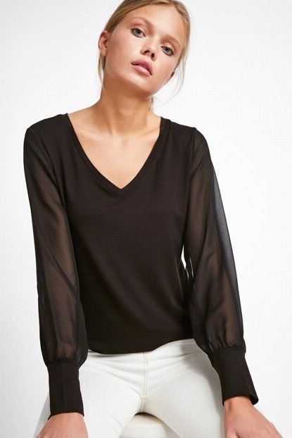 Happiness İst. Kadın Siyah Sıfon Kollu V Yaka Likralı Penye ... ürününü indirimli fiyatıyla trendyol.com sitesinden satın alabilirsiniz.