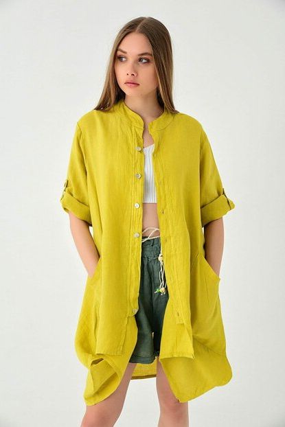 Kadın İtalyan Tunik Hardal Büyük Cepli Düğmeli Keten Tunik ... ürününü indirimli fiyatıyla trendyol.com sitesinden satın alabilirsiniz.