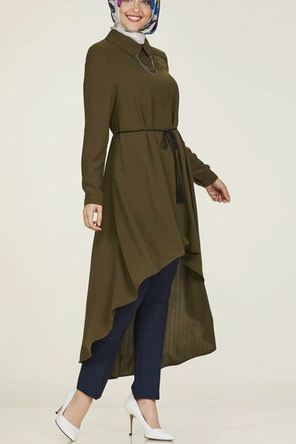 Kadın Simetrik Kesim Modelli Gömlek Yaka Haki Tunik 145 ... ürününü indirimli fiyatıyla trendyol.com sitesinden satın alabilirsiniz.