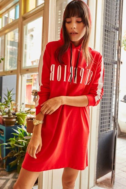 Ola Kadın Kırmızı Kolu Şeritli Kapüşonlu Tunik Elbise ELB ... ürününü indirimli fiyatıyla trendyol.com sitesinden satın alabilirsiniz.