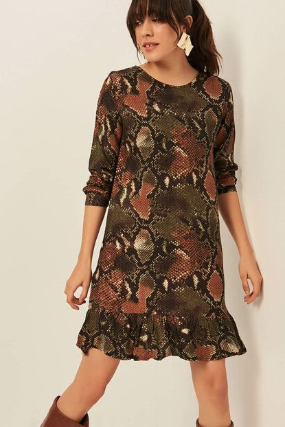 Ola Kadın Yeşil Yılan Desenli Yün Viskon Volanlı Elbise OLA ... ürününü indirimli fiyatıyla trendyol.com sitesinden satın alabilirsiniz.