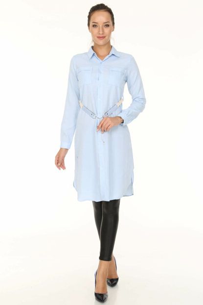 Patiska Kadın Mavi Kemer Detaylı Çift Cepli Düğmeli Tunik ... ürününü indirimli fiyatıyla trendyol.com sitesinden satın alabilirsiniz.