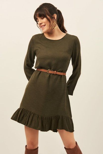Kadın Yeşil Eteği Volanlı Düz Yün Viskon Elbise OLA-EL13558 ... ürününü indirimli fiyatıyla trendyol.com sitesinden satın alabilirsiniz.
