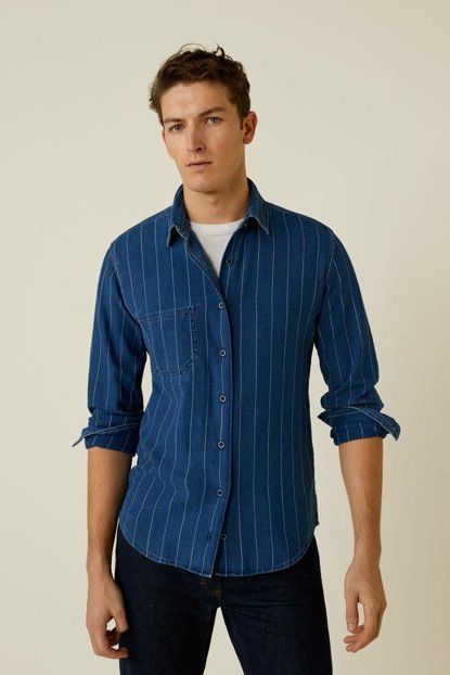 Mango Erkek Çivit Mavisi Çizgili Kot Gömlek Ceket 43037015 ... ürününü indirimli fiyatıyla trendyol.com sitesinden satın alabilirsiniz.
