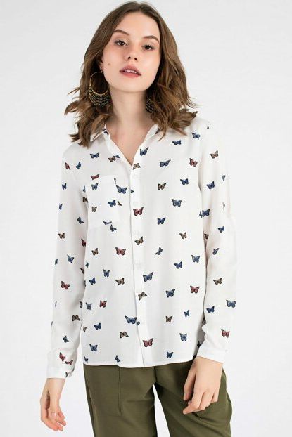 Kadın Beyaz Kelebek Baskılı Gömlek ALP-9YB311GML Arma Life ... ürününü indirimli fiyatıyla trendyol.com sitesinden satın alabilirsiniz.