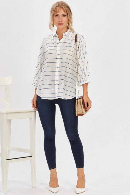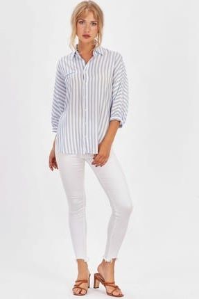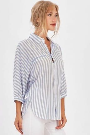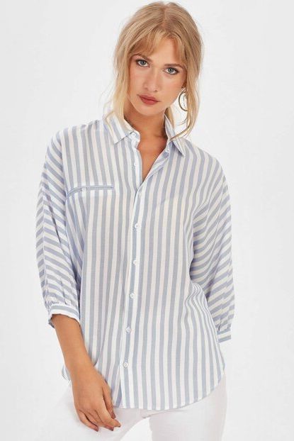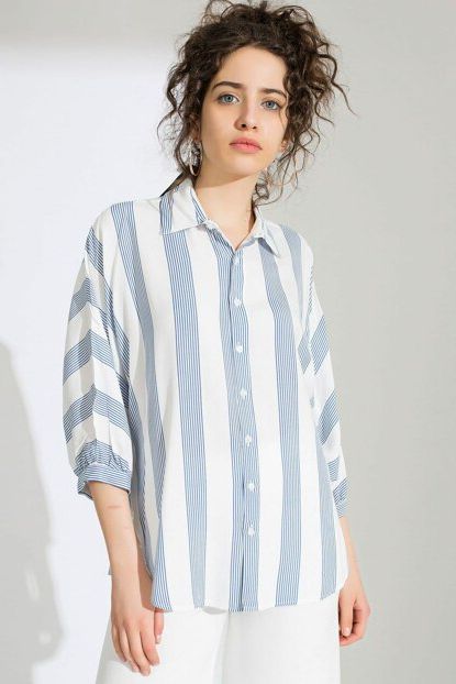 Kadın Mavi Kalın Çizgili Yarasa Kol Gömlek ALP-9YB256GML ... ürününü indirimli fiyatıyla trendyol.com sitesinden satın alabilirsiniz.