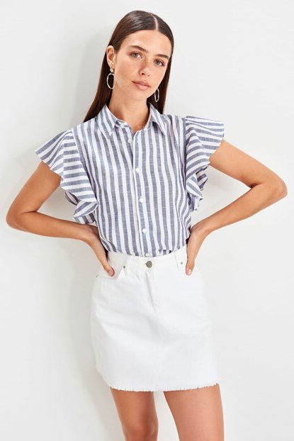 TRENDYOLMİLLA Lacivert Çizgili Gömlek TWOAW20GO0032 | Trendyol ürününü indirimli fiyatıyla trendyol.com sitesinden satın alabilirsiniz.