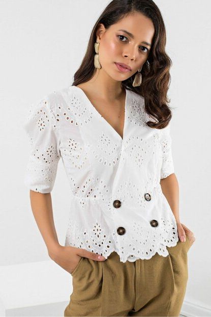 Mispacoz Kadın Beyaz Fisto Model Düğmeli Kruvaze Yaka Bluz ... ürününü indirimli fiyatıyla trendyol.com sitesinden satın alabilirsiniz.