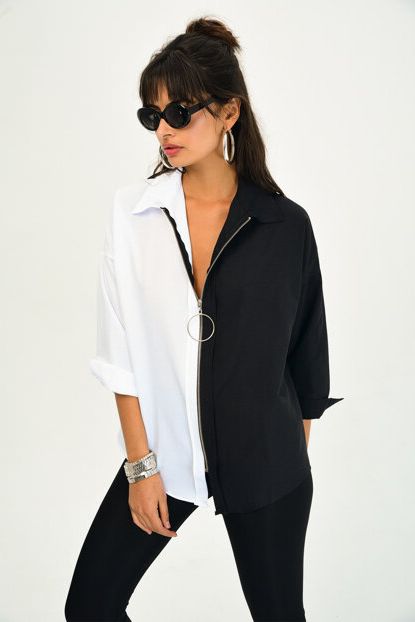 Cool \u0026 Sexy Kadın Siyah Beyaz Fermuarlı Gömlek SGT03 | Trendyol ürününü indirimli fiyatıyla trendyol.com sitesinden satın alabilirsiniz.