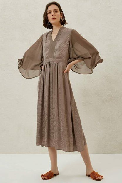 OOPS Kadın Füme Kruvaze Yaka Beli ve Kolu Büzgülü Uzun Şifon ... ürününü indirimli fiyatıyla trendyol.com sitesinden satın alabilirsiniz.