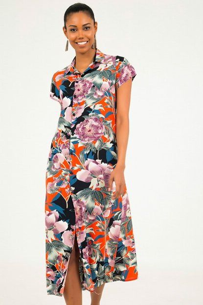 Kadın Turuncu Büyük Çiçekli Kuşaklı Kısa Kol Viskon Gömlek ... ürününü indirimli fiyatıyla trendyol.com sitesinden satın alabilirsiniz.