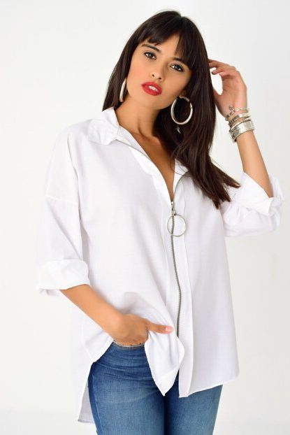 Cool \u0026 Sexy Kadın Beyaz Fermuarlı Gömlek DY25580 | Trendyol ürününü indirimli fiyatıyla trendyol.com sitesinden satın alabilirsiniz.