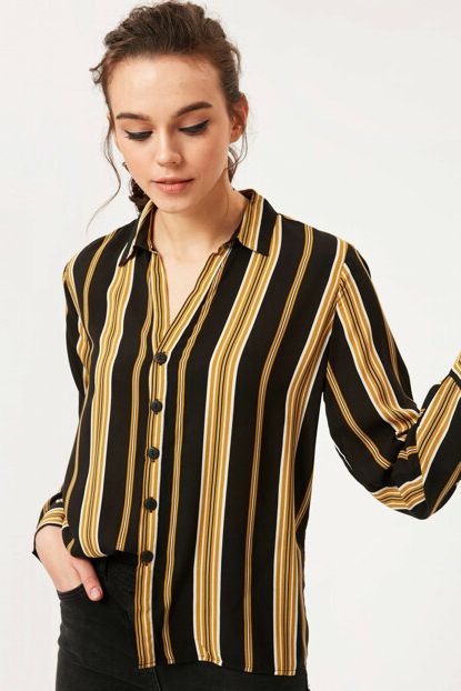 Koton Kadın Siyah Çizgili Gömlek 8KAK68089PW | Trendyol ürününü indirimli fiyatıyla trendyol.com sitesinden satın alabilirsiniz.