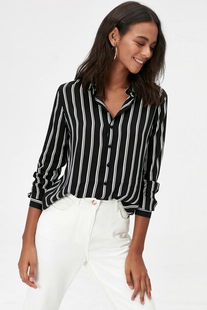 Happiness İst. Kadın Siyah Beyaz Çizgili Ceket Yaka Gömlek ... ürününü indirimli fiyatıyla trendyol.com sitesinden satın alabilirsiniz.