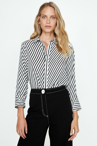 Koton Kadın Siyah Çizgili Gömlek 9KAK66377IW | Trendyol ürününü indirimli fiyatıyla trendyol.com sitesinden satın alabilirsiniz.