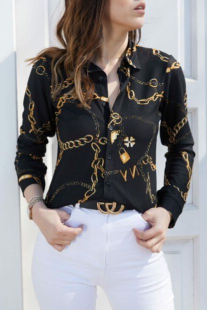 Ola Kadın Siyah Zincir Desenli Gömlek OLA-G10676 | Trendyol ürününü indirimli fiyatıyla trendyol.com sitesinden satın alabilirsiniz.