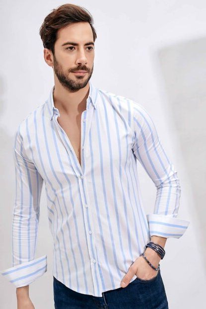 Sateen Men Erkek Beyaz-Mavi Slim Fit Çizgili Gömlek - 116 ... ürününü indirimli fiyatıyla trendyol.com sitesinden satın alabilirsiniz.