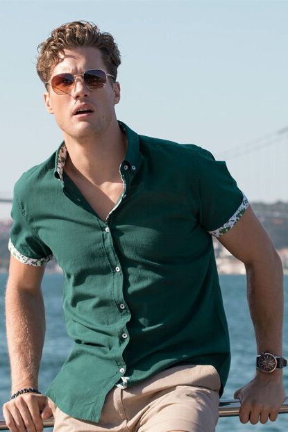 Erkek Yeşil Klasik Yaka Kısa Kollu Gömlek 9YAM61778BW Koton ... ürününü indirimli fiyatıyla trendyol.com sitesinden satın alabilirsiniz.