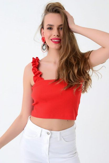Cool \u0026 Sexy Kadın Kırmızı Fırfırlı Crop Bluz KZ30 | Trendyol ürününü indirimli fiyatıyla trendyol.com sitesinden satın alabilirsiniz.