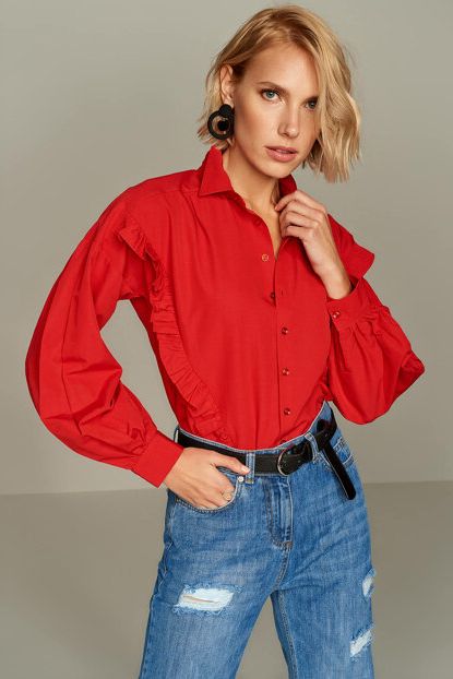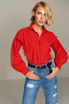 TRENDYOLMİLLA Kırmızı Fırfırlı Gömlek TWOSS19XM0129 | Trendyol ürününü indirimli fiyatıyla trendyol.com sitesinden satın alabilirsiniz.