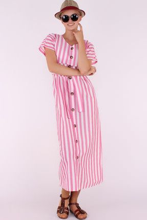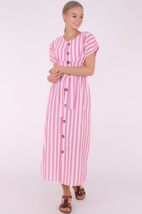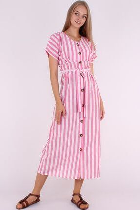 MissThetis Kadın Pembe-Beyaz Ahşap Düğmeli Kemerli Çizgili ... ürününü indirimli fiyatıyla trendyol.com sitesinden satın alabilirsiniz.