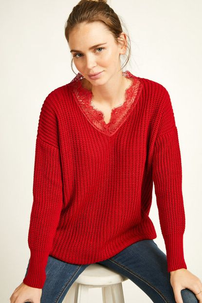 Kadın Kırmızı Yakası Dantel Selanik Örgü Triko Kazak 19K1805 ... ürününü indirimli fiyatıyla trendyol.com sitesinden satın alabilirsiniz.