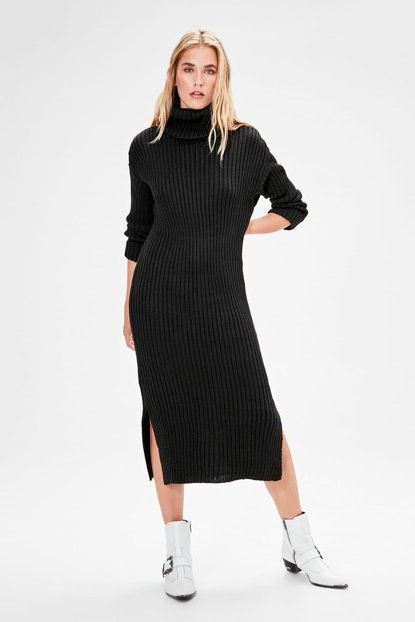 TRENDYOLMİLLA Siyah Boğazlı Yırtmaçlı Midi Triko Elbise ... ürününü indirimli fiyatıyla trendyol.com sitesinden satın alabilirsiniz.