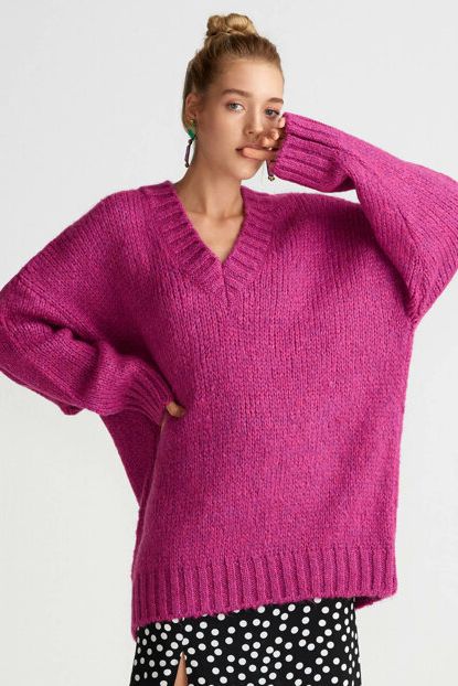 Kadın Magenta V Yaka Geniş Kazak 101A02310 Dilvin | Trendyol ürününü indirimli fiyatıyla trendyol.com sitesinden satın alabilirsiniz.