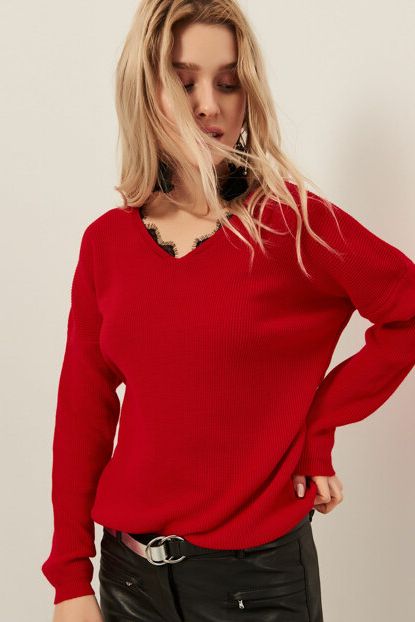 Ola Kadın Kırmızı Yaka Dantelli Triko Kazak OLA-K11396 ... ürününü indirimli fiyatıyla trendyol.com sitesinden satın alabilirsiniz.