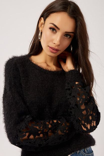 Sateen Kadın Kolları Dantelli Püsküllü Siyah Triko Kazak ... ürününü indirimli fiyatıyla trendyol.com sitesinden satın alabilirsiniz.