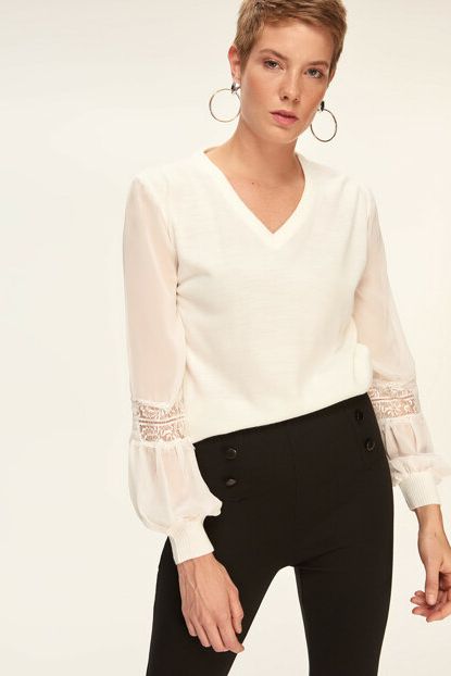TRENDYOLMİLLA Ekru Dantelli Triko Kazak TOFAW19DU0075 | Trendyol ürününü indirimli fiyatıyla trendyol.com sitesinden satın alabilirsiniz.