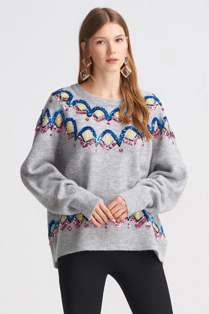 Dilvin Kadın Gri İtalyan Kol Pul Payet İşlemeli Kazak ... ürününü indirimli fiyatıyla trendyol.com sitesinden satın alabilirsiniz.