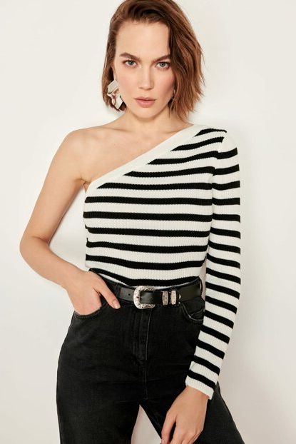 TRENDYOLMİLLA Siyah Tek Kol Çizgili Triko Kazak ... ürününü indirimli fiyatıyla trendyol.com sitesinden satın alabilirsiniz.