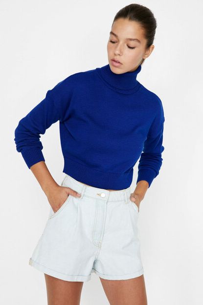 Koton Kadin Mavi Yüksek Yaka Kazak 9KAL96834JT | Trendyol ürününü indirimli fiyatıyla trendyol.com sitesinden satın alabilirsiniz.
