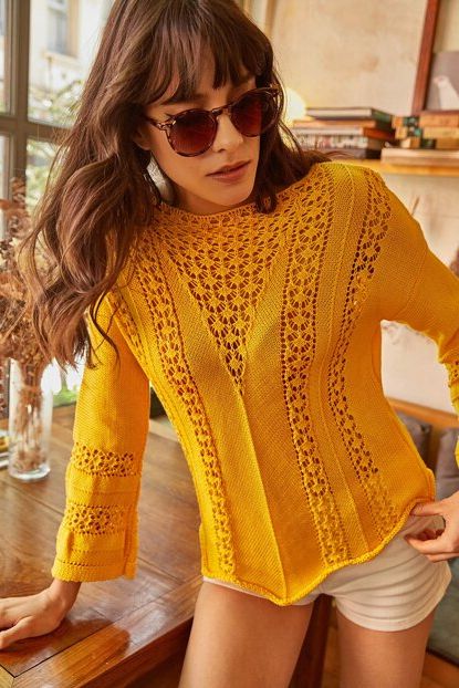 Ola Kadın Sarı Ajurlu Merserize Pamuk Triko Bluz BLZ ... ürününü indirimli fiyatıyla trendyol.com sitesinden satın alabilirsiniz.