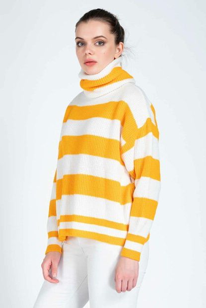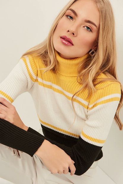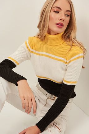 Ola Kadın Sarı Beyaz Siyah Şeritli Yarım Balıkçı Triko Kazak ... ürününü indirimli fiyatıyla trendyol.com sitesinden satın alabilirsiniz.