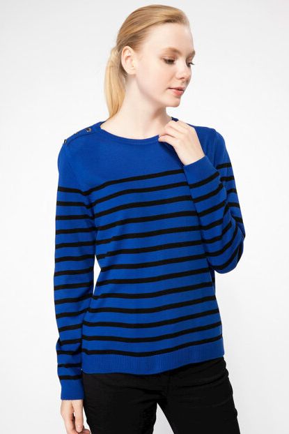 Kadın Omuzları Düğme Detaylı Çizgili Kazak H4375AZ.18AU ... ürününü indirimli fiyatıyla trendyol.com sitesinden satın alabilirsiniz.