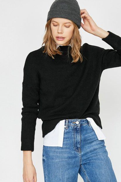 Kadın Siyah Yülksek Yaka Uzun Kollu Kazak 0KAL98193IK Koton ... ürününü indirimli fiyatıyla trendyol.com sitesinden satın alabilirsiniz.