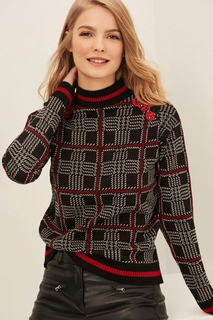 Koton Siyah Nakışlı Kazak Modelleri