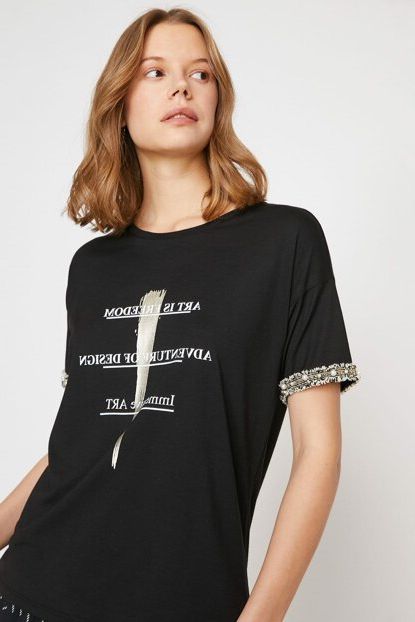 Koton Kadın Siyah Bisiklet Yaka İnci Detaylı Kısa Kollu T ... ürününü indirimli fiyatıyla trendyol.com sitesinden satın alabilirsiniz.