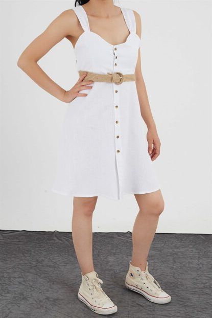 Kadın Beyaz Düğme Ve Hasır Kemer Elbise TCELB0040 Giyingo ... ürününü indirimli fiyatıyla trendyol.com sitesinden satın alabilirsiniz.
