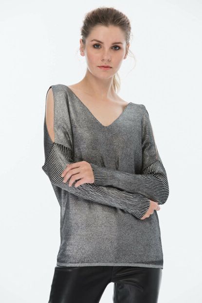 New Now Kadın Siyah V Yaka Omuzu Açık Varaklı Triko Kazak ... ürününü indirimli fiyatıyla trendyol.com sitesinden satın alabilirsiniz.