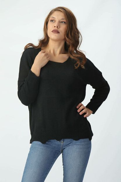 yoyo Kadın Siyah V Yaka Salaş Kazak Y\u0026Y-17S025036 | Trendyol ürününü indirimli fiyatıyla trendyol.com sitesinden satın alabilirsiniz.