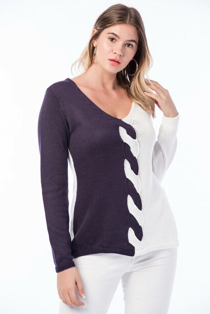 Şans Kadın Mor V Yaka İki Renk Triko Kazak 65N8344 | Trendyol ürününü indirimli fiyatıyla trendyol.com sitesinden satın alabilirsiniz.