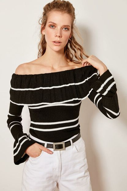 TRENDYOLMİLLA Siyah Carmen Yaka Fırfırlı Triko Kazak ... ürününü indirimli fiyatıyla trendyol.com sitesinden satın alabilirsiniz.