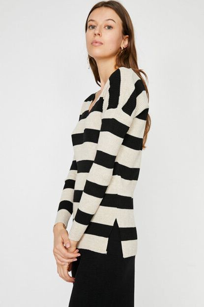 Koton Kadın Siyah V Yaka Uzun Kollu Çizgili Kazak ... ürününü indirimli fiyatıyla trendyol.com sitesinden satın alabilirsiniz.