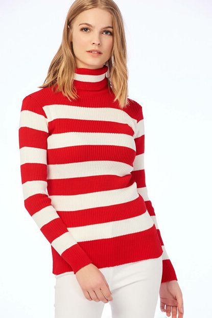 Ola Kadın Kırmızı Balıkçı Yaka Çizgili Triko Kazak OLA ... ürününü indirimli fiyatıyla trendyol.com sitesinden satın alabilirsiniz.