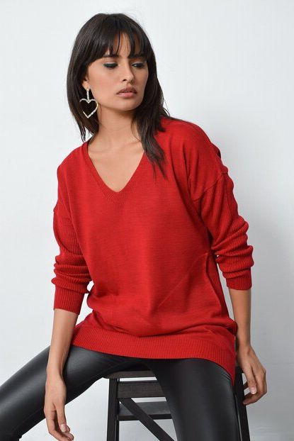 Addax Kadın Kırmızı V Yaka Triko Kazak ADX-0000014678 | Trendyol ürününü indirimli fiyatıyla trendyol.com sitesinden satın alabilirsiniz.