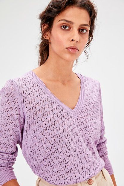 TRENDYOLMİLLA Lila V Yaka Ajurlu Triko Kazak TWOAW20FV0186 ... ürününü indirimli fiyatıyla trendyol.com sitesinden satın alabilirsiniz.