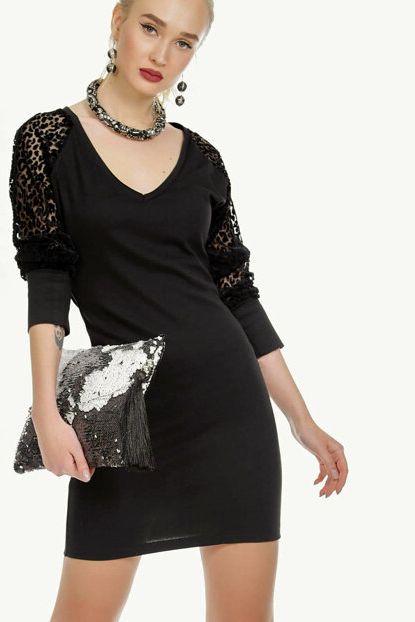 Kadın Siyah Leopar Tül Kol Detaylı V Yaka Elbise ... ürününü indirimli fiyatıyla trendyol.com sitesinden satın alabilirsiniz.